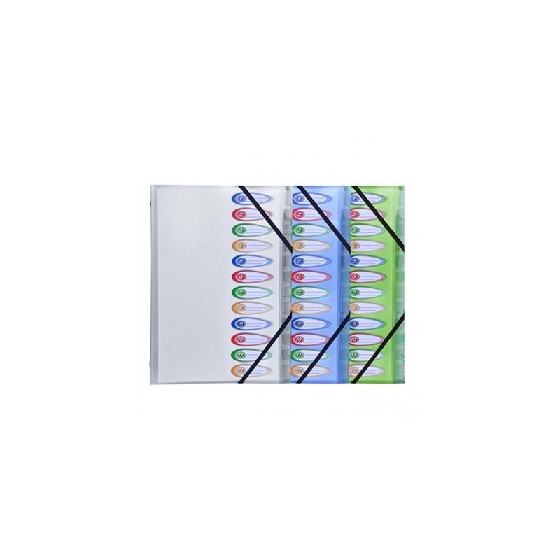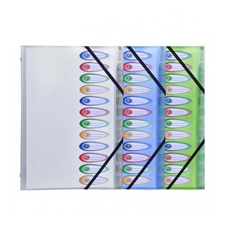 • Trieur 12 compartiments 26x32cm en polyproplène opaque 5/100°. Assortis Avec index.